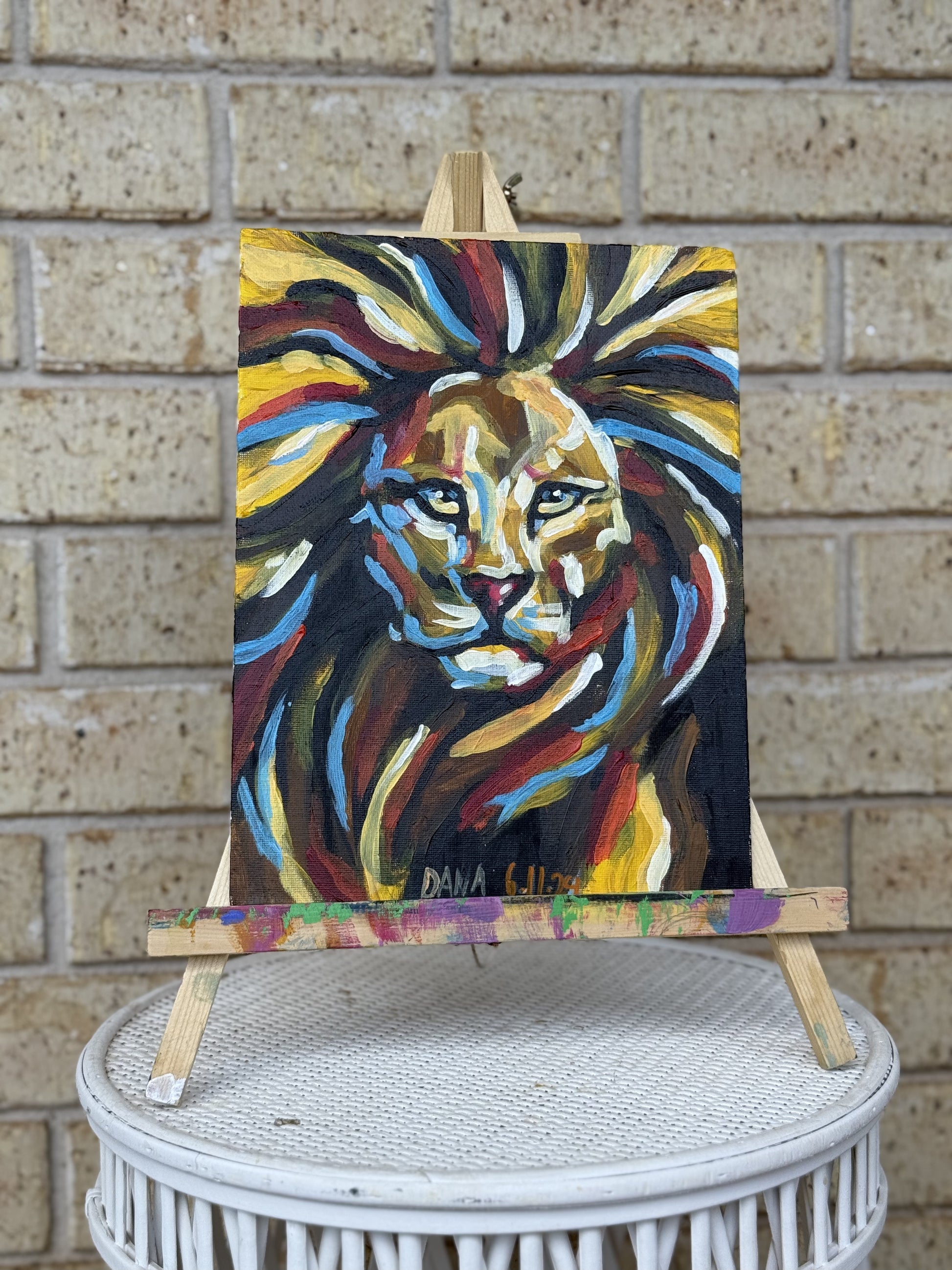 This playful design captures the majestic spirit of lions through bold, abstract shapes and vibrant colours.